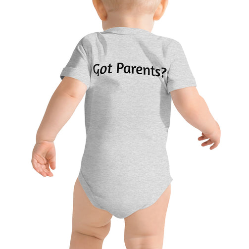 The back side on this one says "Got Parents?" Your baby could tell you they feel this way, why not? This t-shirt feels soft and lightweight, with the right amount of stretch. It's comfortable and flattering for your baby to be dressed to the nines with this 100% cotton one piece. It has three snap leg closure for easy changing, a comfortable envelope neckline, and a beautiful print that's bound to get the baby all happy and giggling.