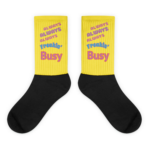 These socks are extra comfortable thanks to their cushioned bottom. The foot is black with artwork printed along the leg with crisp, bold colors that won't fade.