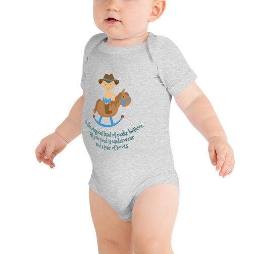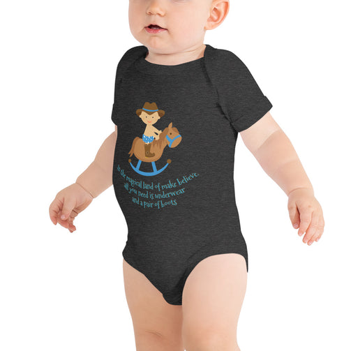 Dress your baby to the nines with this 100% cotton one piece. It has three snap leg closure for easy changing, a comfortable envelope neckline, and a beautiful print that's bound to get the baby all happy and giggling.
